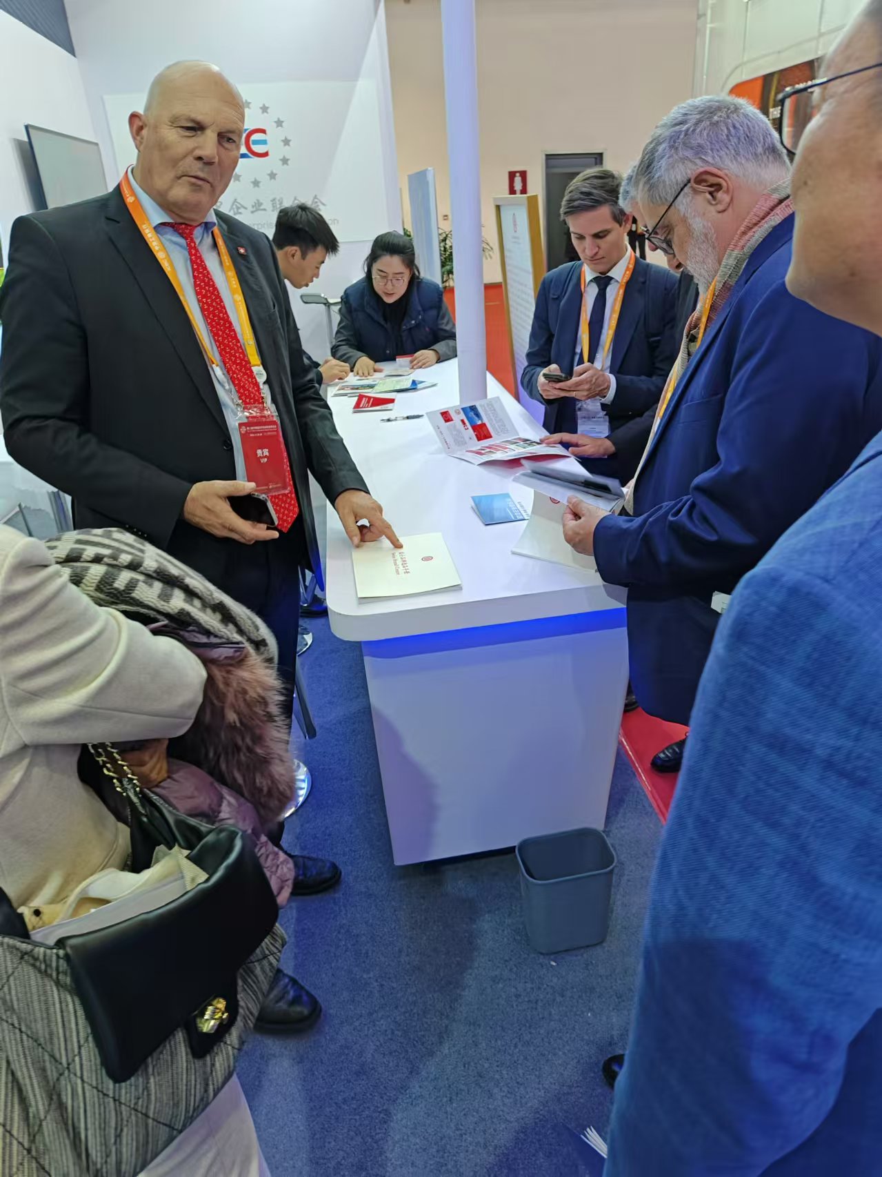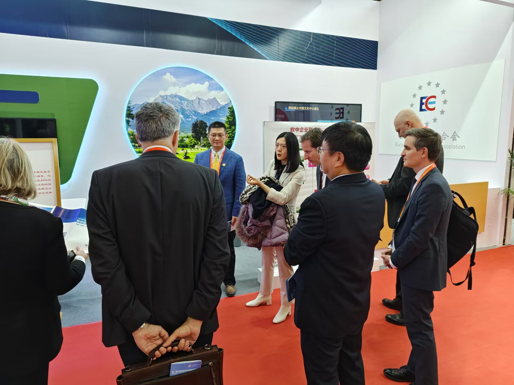 2024年11月26日上午,鏈博會開幕會結(jié)束,瑞士議員代表團全部到訪歐中企業(yè)聯(lián)合會在鏈博會的展廳。